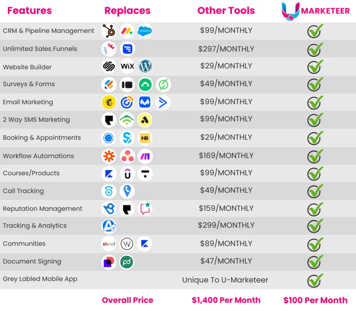 U-Marketeer is an all-in-one marketing and business operations platform designed to help businesses streamline advertising, client communication, lead nurturing, and more, all in one easy-to-use dashboard.